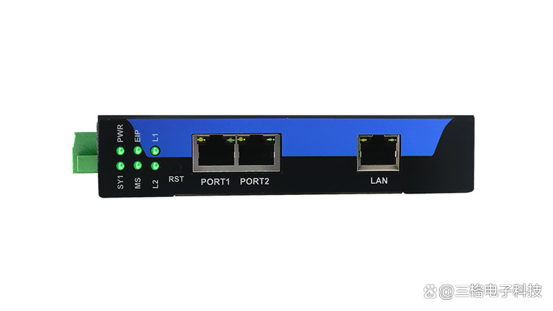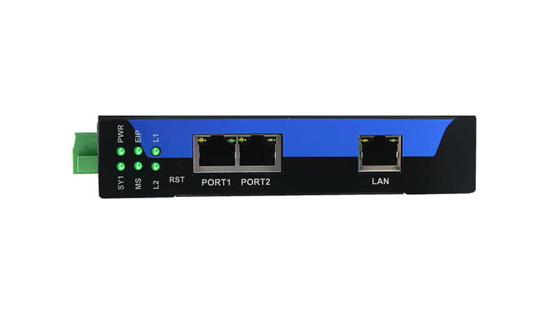 EtherNet/IP 端采用两个百兆RJ45接口,Modbus TCP接口采用一个百兆RJ45;