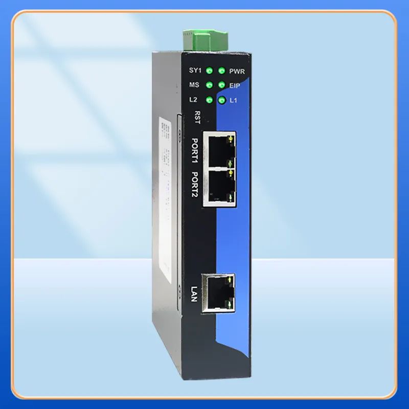 网关做为 EtherNet/IP 网络的从站设备,带2个 RJ45以太网接口,支持 100BASE-TX,MDI/MDIX 自检测,集成以太网交换机,可以组成链式网络,支持环网冗余;