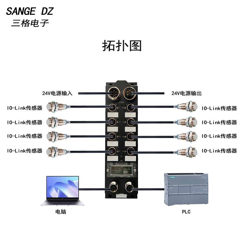 IO-Link系列集线器是一系列数字量输入输出I/O设备,可以将标准开关量信号接入到此设备。通过此集线器方便的将大量的I/O点位接入到IO-Link主站,进而接入到PLC控制系统。 IO-Link通信接口和8个I/O接口(16个IO点位)均采用M12规范的接口形式。协议符合IO-Link V1.1版本要求,支持COM2通讯速率,可以连接各品牌的IO-Link主站。