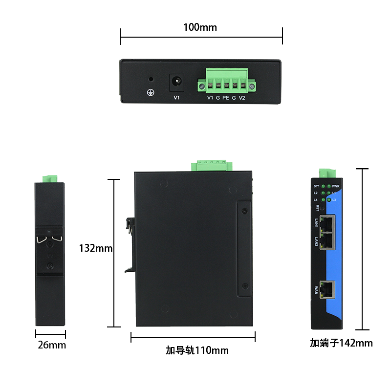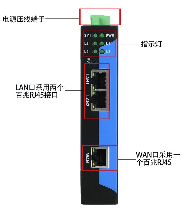 网关有 1 个两口以太网交换机接口(LAN 口)和 1 个以太网通讯接口(WAN 口)。不对原系统做任何硬件和软件修改,不影响原系统通讯,可以实现设备的 IP 地址和通讯端口的转换。