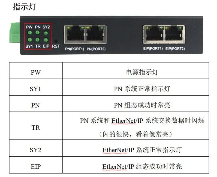 本产品是PN(Profinet)和EtherNet/IP网关,使用数据映射方式工作。
